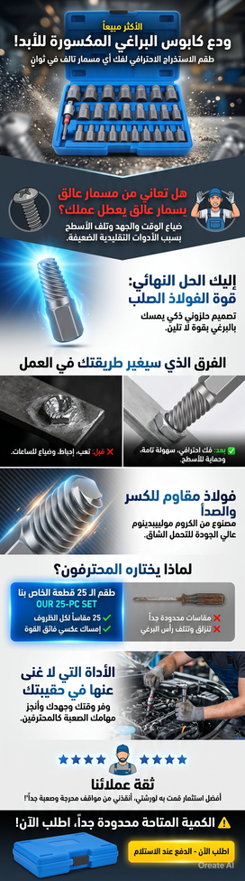 نقدم لك طقم مستخرج البراغي الاحترافي المكون من 25 قطعة 🧰✨